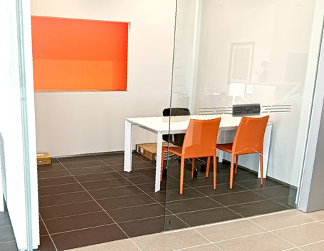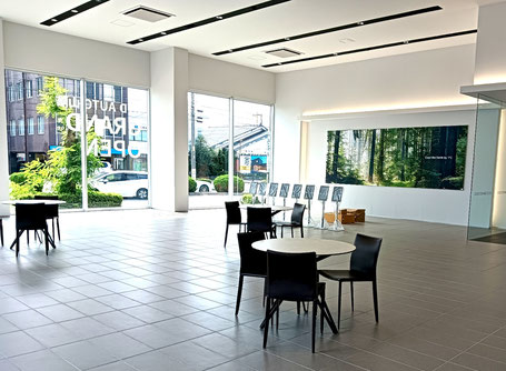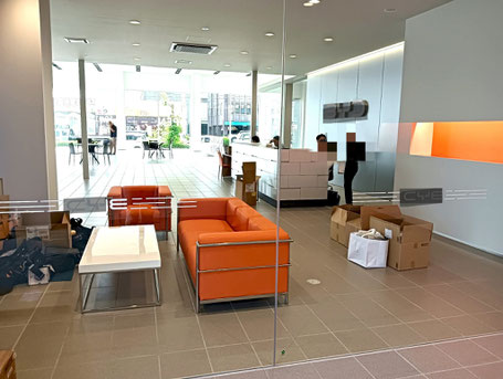 カーディーラーショールームへ商談用家具類の納品をさせて頂きました。アクセントカラーが際立ちます。